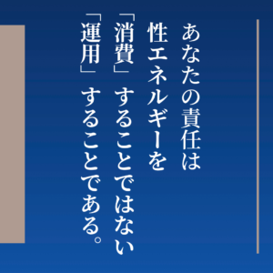 性エネルギーとは、人間が人生を全うするために使うことができる最大のエネルギーであり、あなたに与えられているリソースです。ですから、正しく活用、運用できればあなたの人生は生産的になり、道が開かれていくことになります。