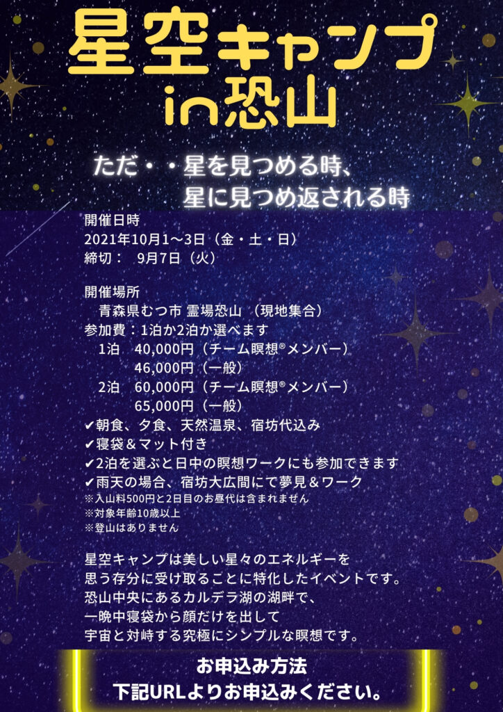 星空キャンプを青森県の恐山にて開催することが決定いたしました。