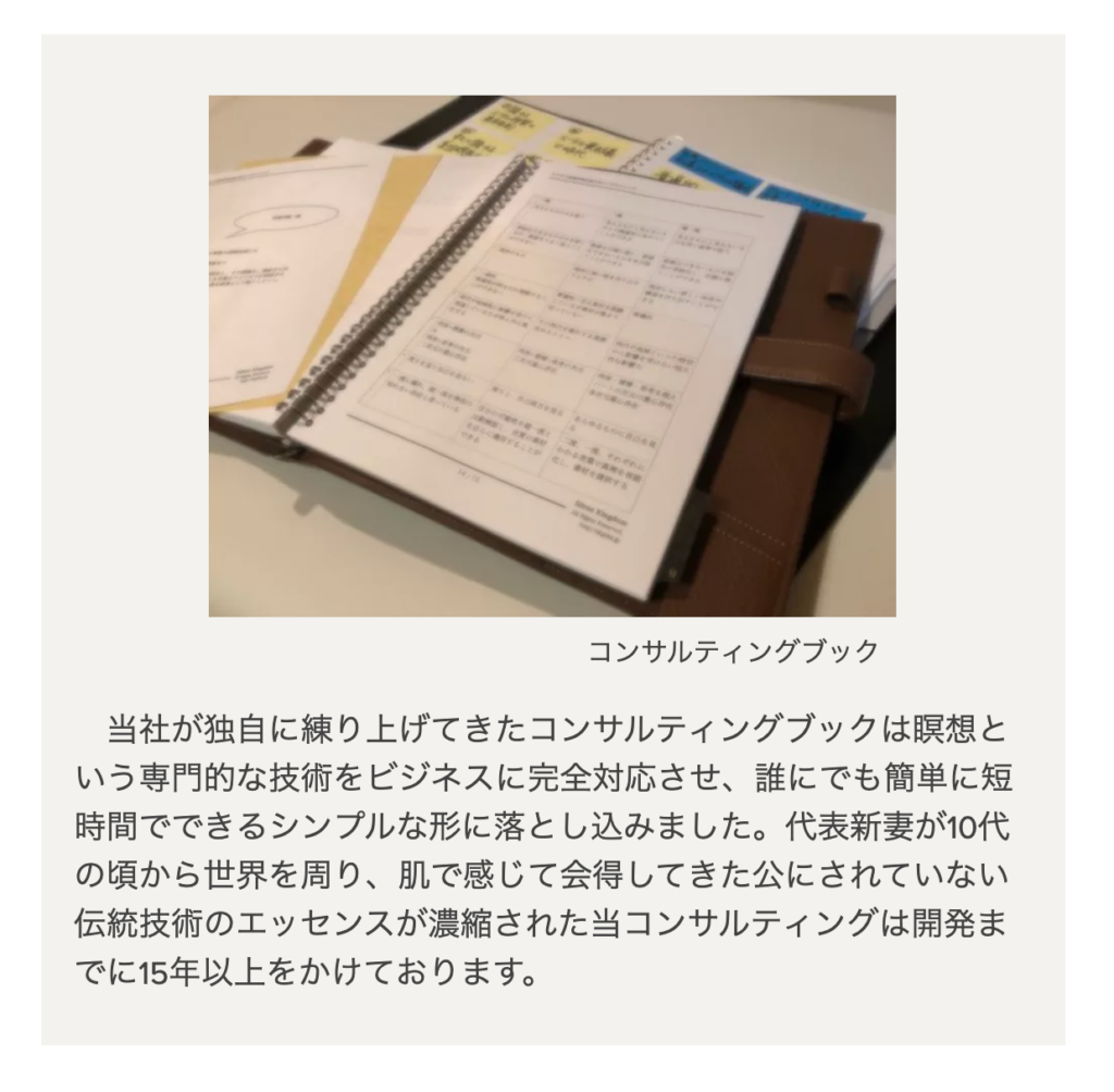 当コンサルティングは瞑想をビジネスシーン専用に加工し、ビジネスチーム瞑想システムとして提供しています。